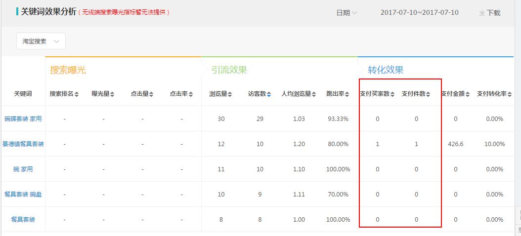 看不清楚的可以点击旁边的下载,我们在表格里能清楚的看到引流效果,这里会出现一种情况,如果是引流下降幅度特别大的词你需要好好注意了。